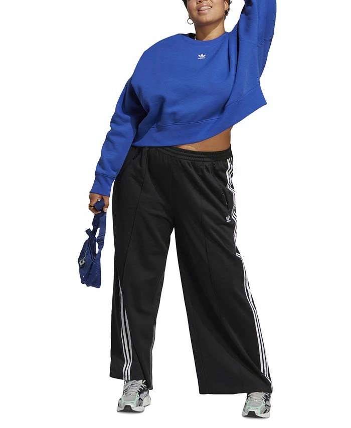 A relaxed take on a classic, this plus size adidas pullover sweatshirt is styled in soft fleece with drop shoulders and wide waistband to let you move in total comfort. Mix up the vibe with denim or wide-leg trousers, or keep it head-to-toe casual with matching sweat pants for an elevated take on loungewear.