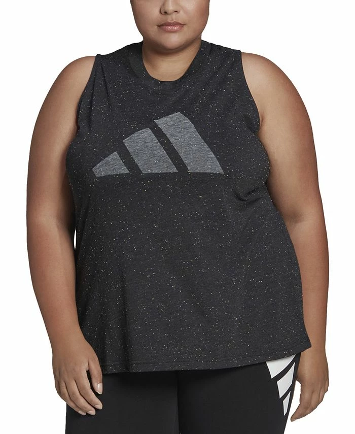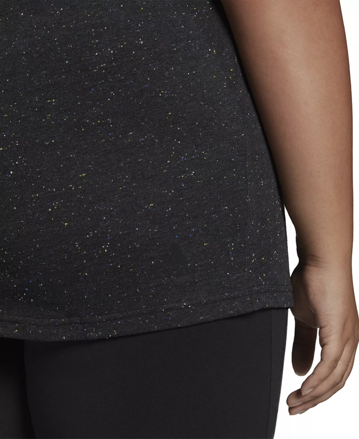 Something you can move in. Something you can relax in. This Adidas plus size tank top lets you do it all. No compromises. Just balance. Super-soft material puts comfort at the forefront. Let it hang loosely or tuck it in, the drop-tail hem falls longer in the back to give it that final touch of ease. The mélange look adds subtle visual texture, though the large contrast logo graphic goes the opposite direction of subtlety and flirts with the extreme.