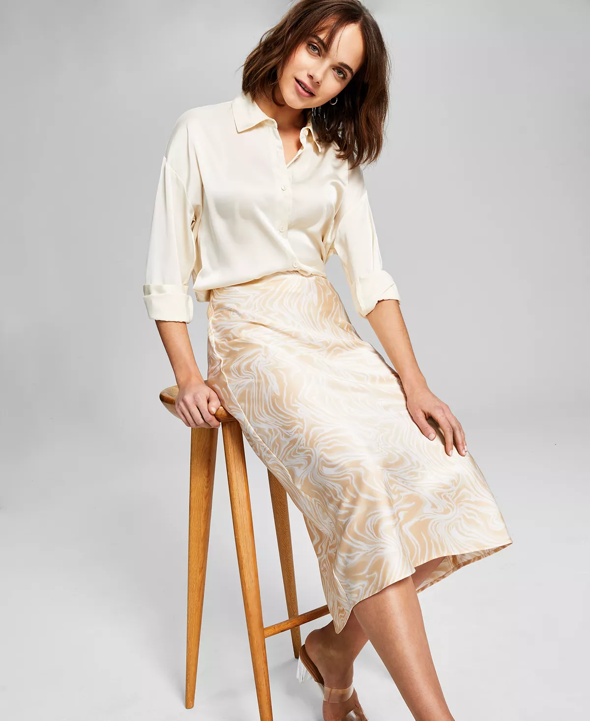 With an allover swirling marble print, this midi skirt from And Now This is sure to be your new fav from desk to dinner.