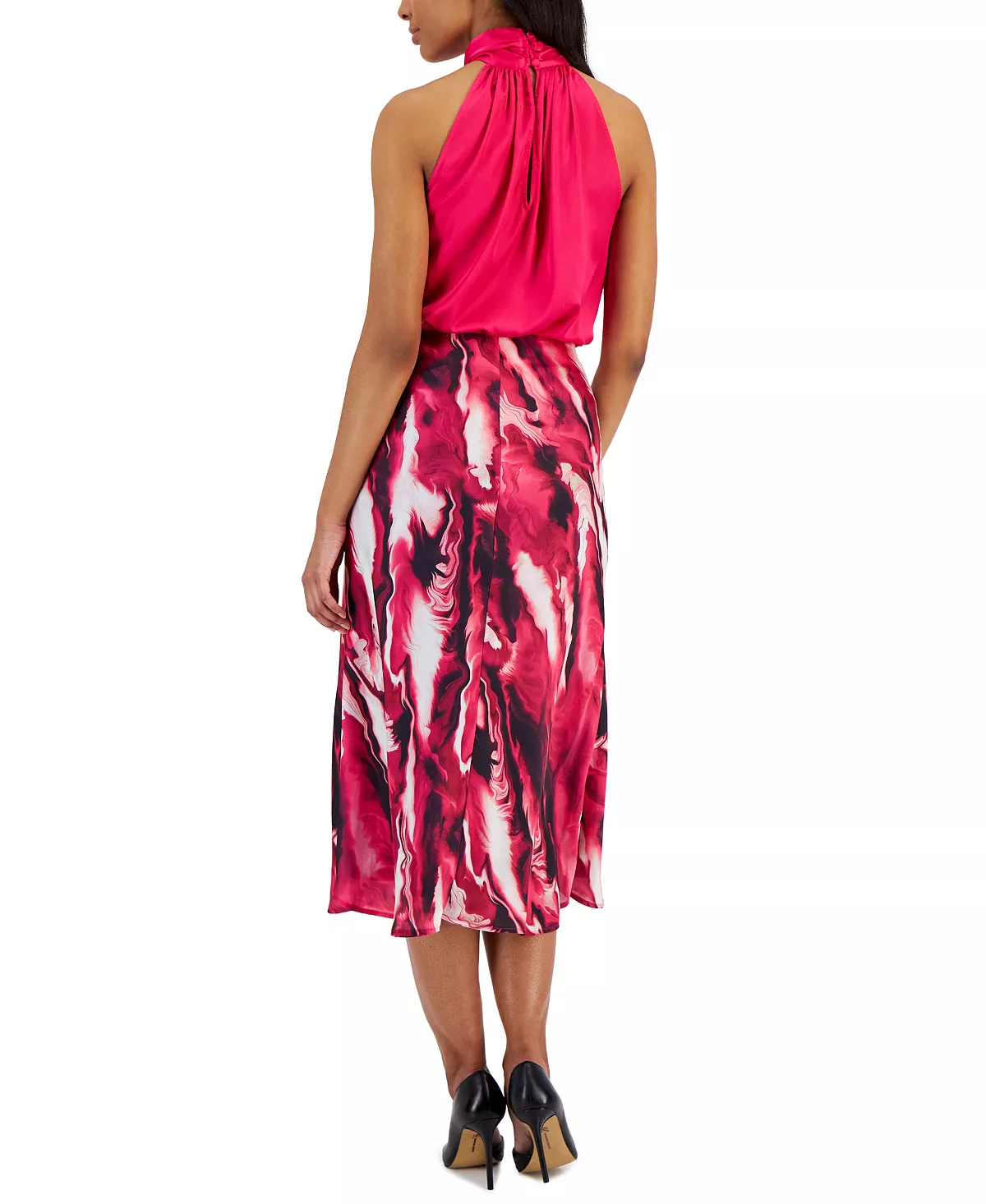 Work this look into your office lineup ASAP. Elegant and sophisticated, Anne Klein pairs a satin halter top with a matching midi skirt for style that will brighten up your closet.