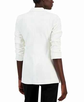 Top off your work look in timeless style with this chic scrunch-sleeve open jacket from Anne Klein.