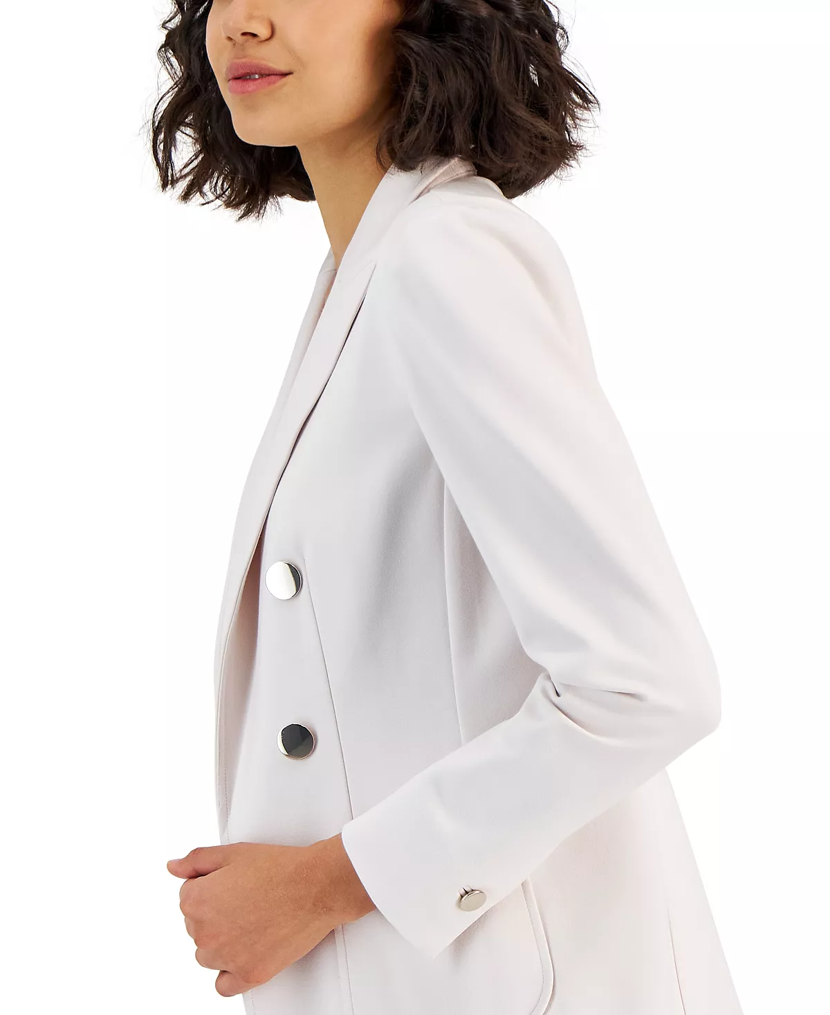 A structured fit and double-breasted button details add sophistication to this office-ready blazer by Anne Klein.