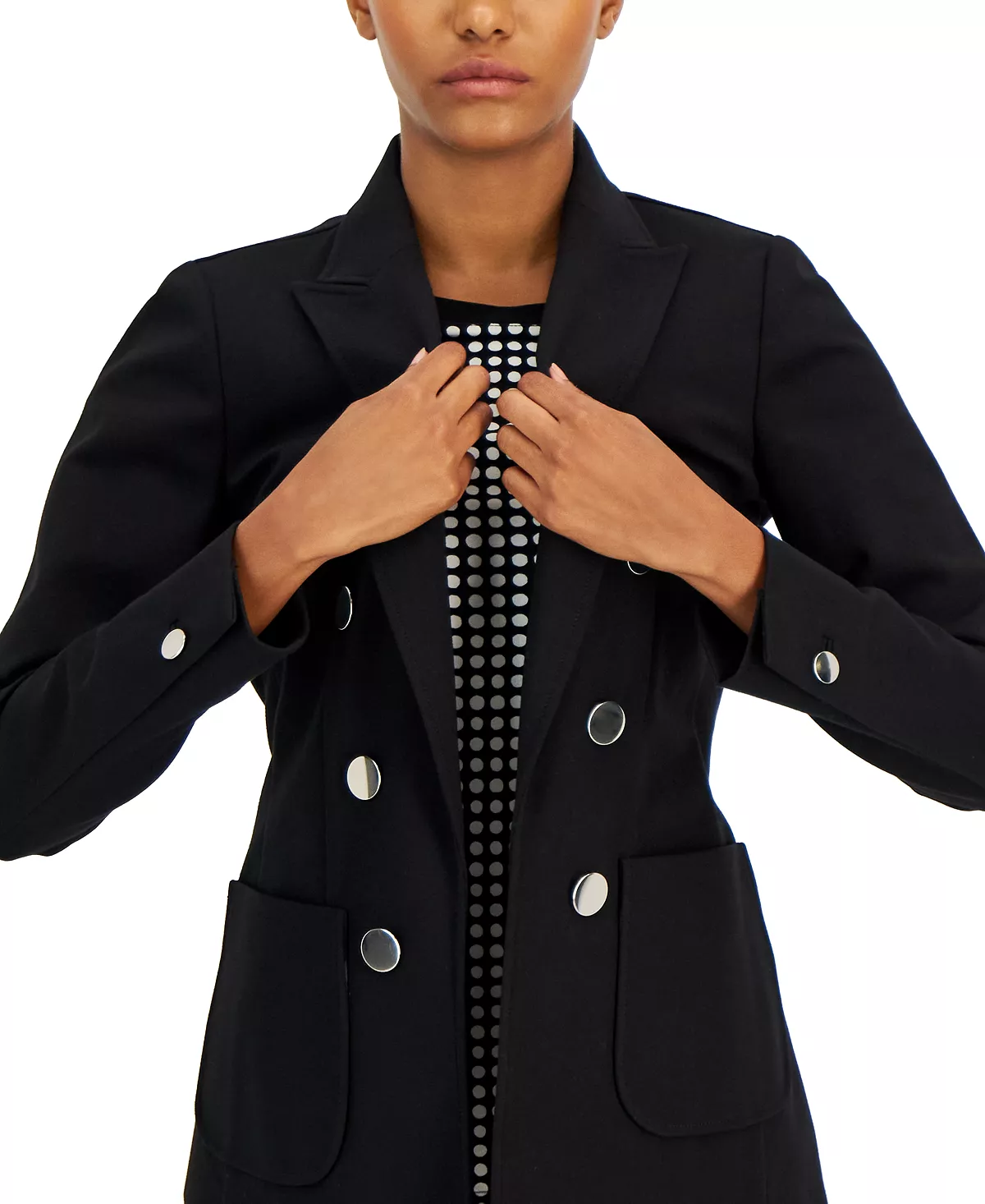 Channel a put-together look with this women’s blazer from Anne Klein, featured with an open front for endless styling options.