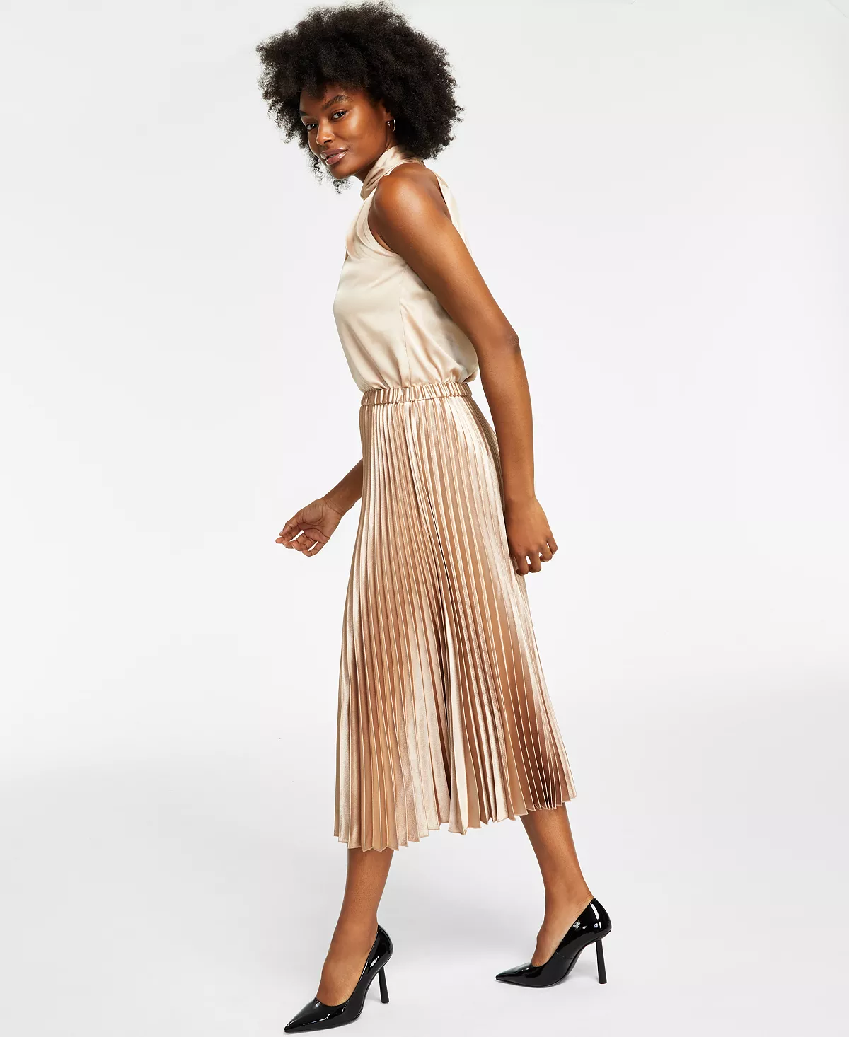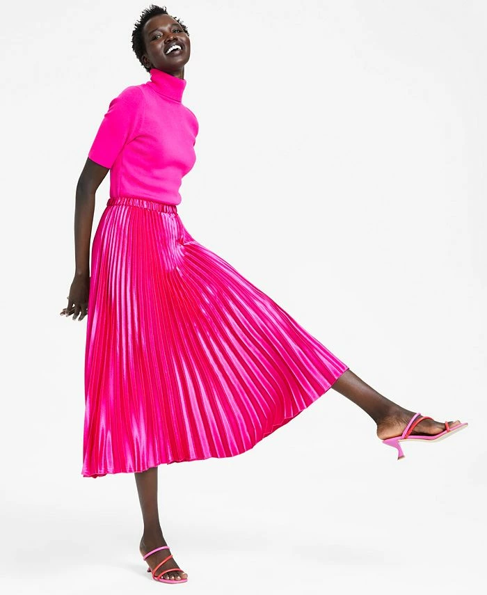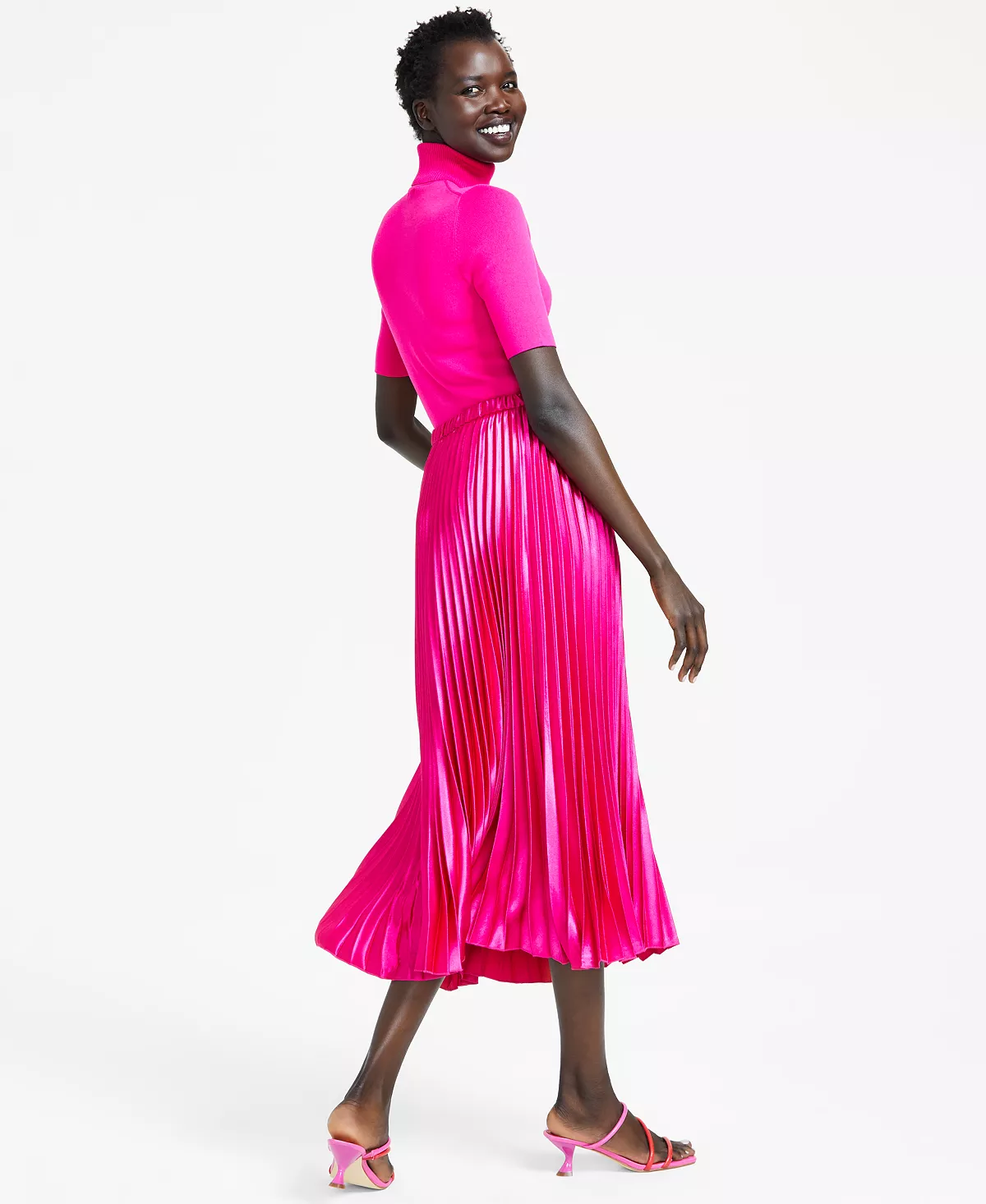 Swaying pleats create graceful movement to this Anne Klein midi skirt in a comfortable pull-on silhouette.