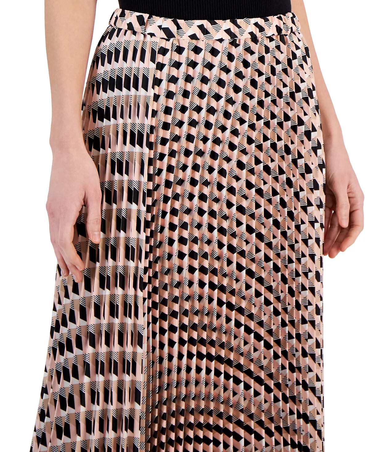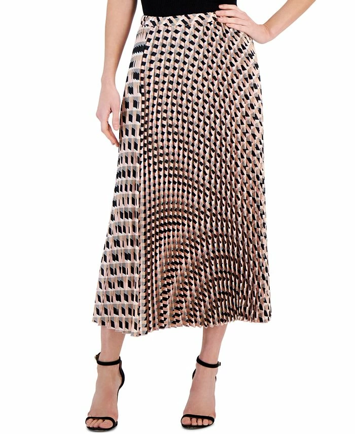 Polished with swingy pleats and an eye-catching print, Anne Klein’s chic midi skirt effortlessly pulls on with an elastic waistband.