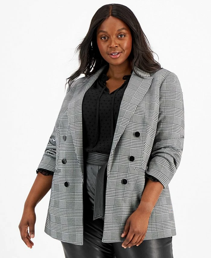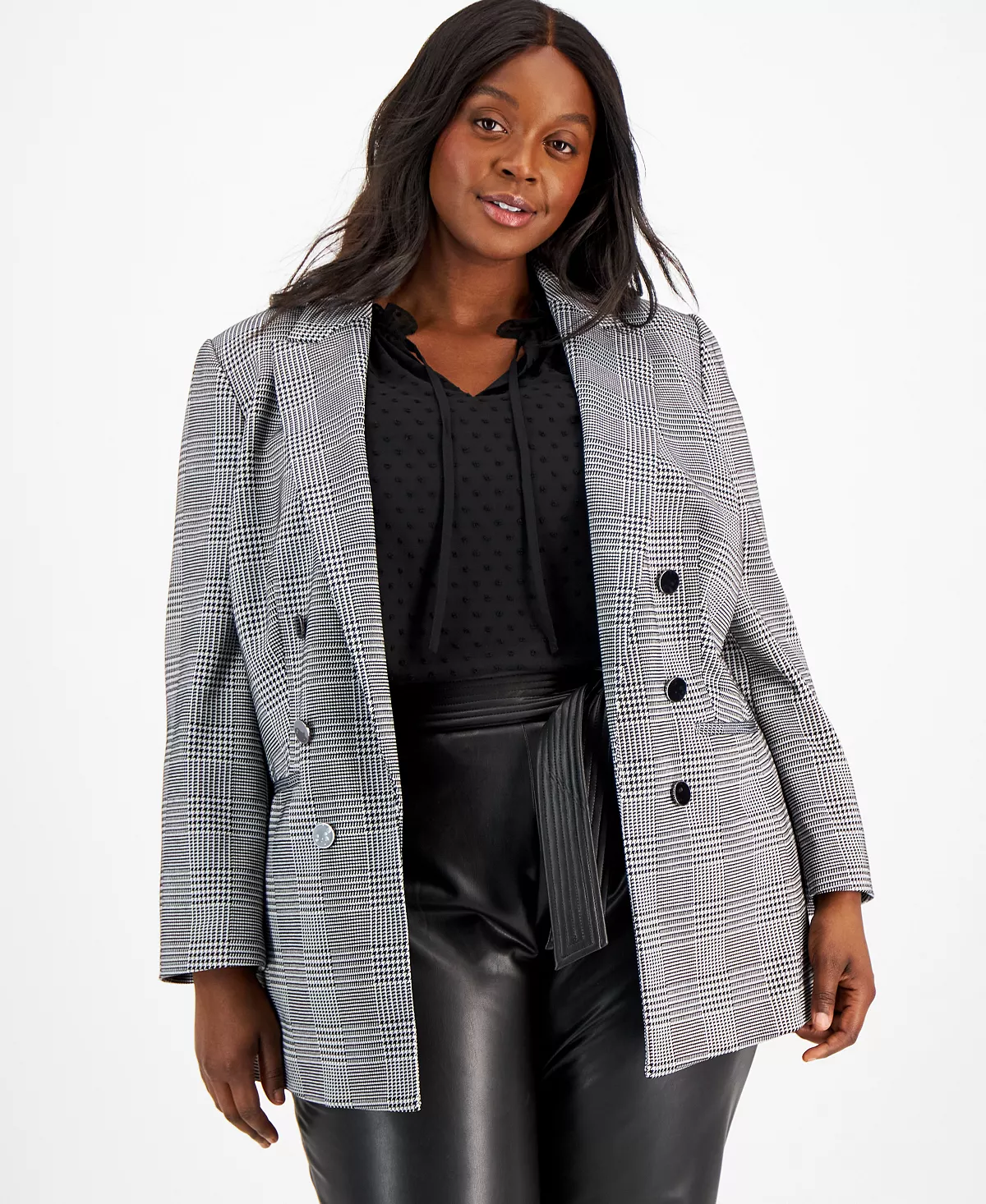 Bar III Plus Size Plaid Faux Double-Breasted Blazer, Created For Macy’s