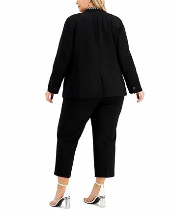 Fuss-free lines and an open silhouette flatter on this smart plus size blazer by Bar III. Shoulder pads structure the look for office-ready style.