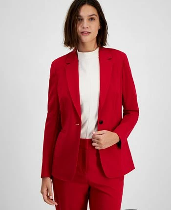 Bar III’s compression-knit blazer is unlined for weightless, effortless layering at work and beyond.