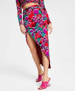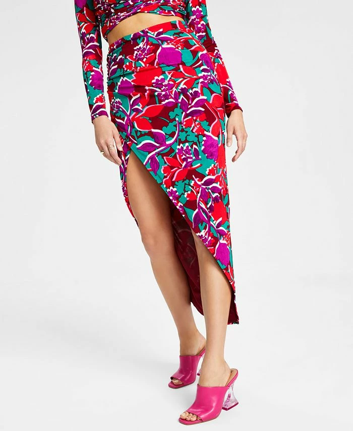 Let those vacation vibes flow anywhere you go in this dramatic printed high-slit midi skirt from Bar III.