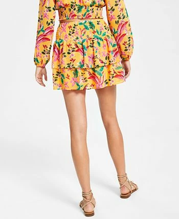 Cheerful florals and a tiered, ruffled hem team up to make magic in this sweet mini skirt from Bar III.