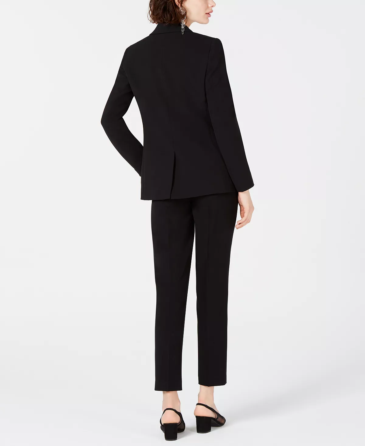 Bar III’s jacket, pants and inverted-pleat blouse offer a lesson in contemporary sophistication.