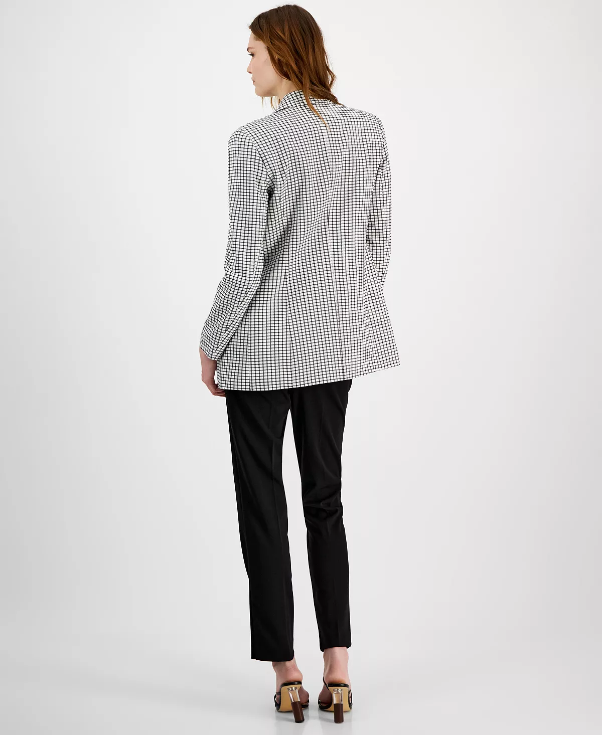 Mix and match the smartest pieces with this ensemble from Bar III, showcasing a faux-double-breasted blazer, ruched camisole and effortless pull-on pants.