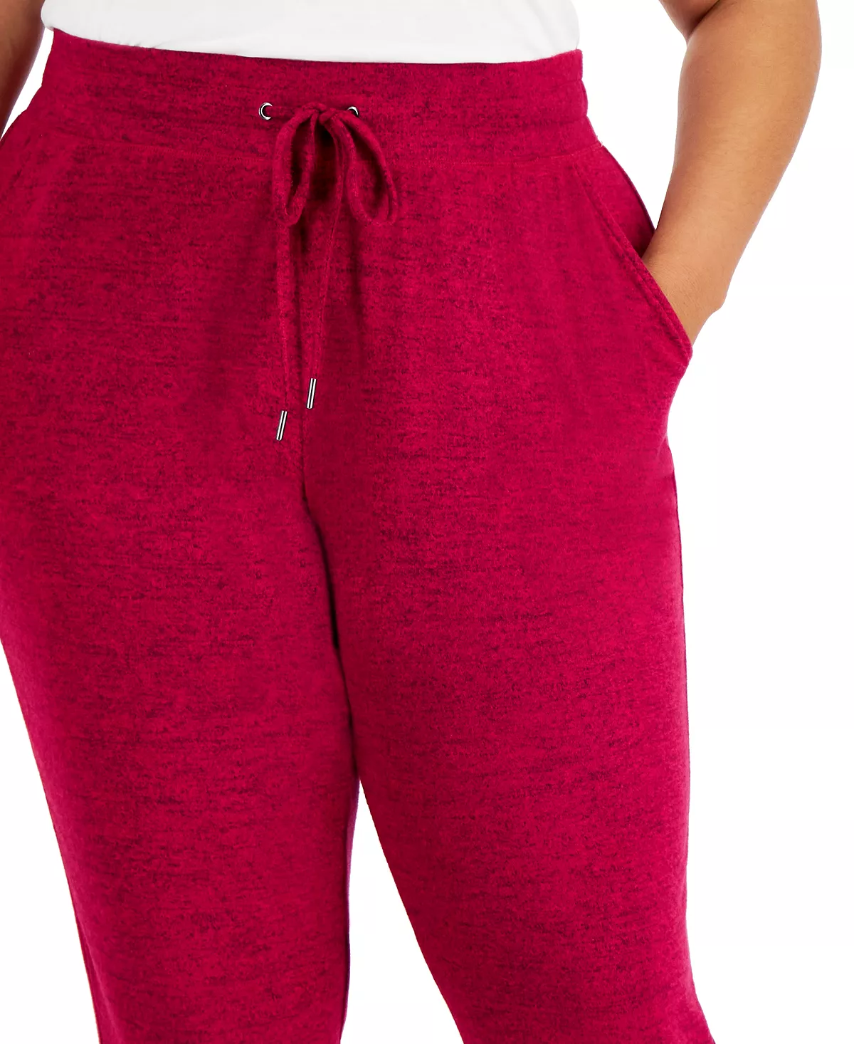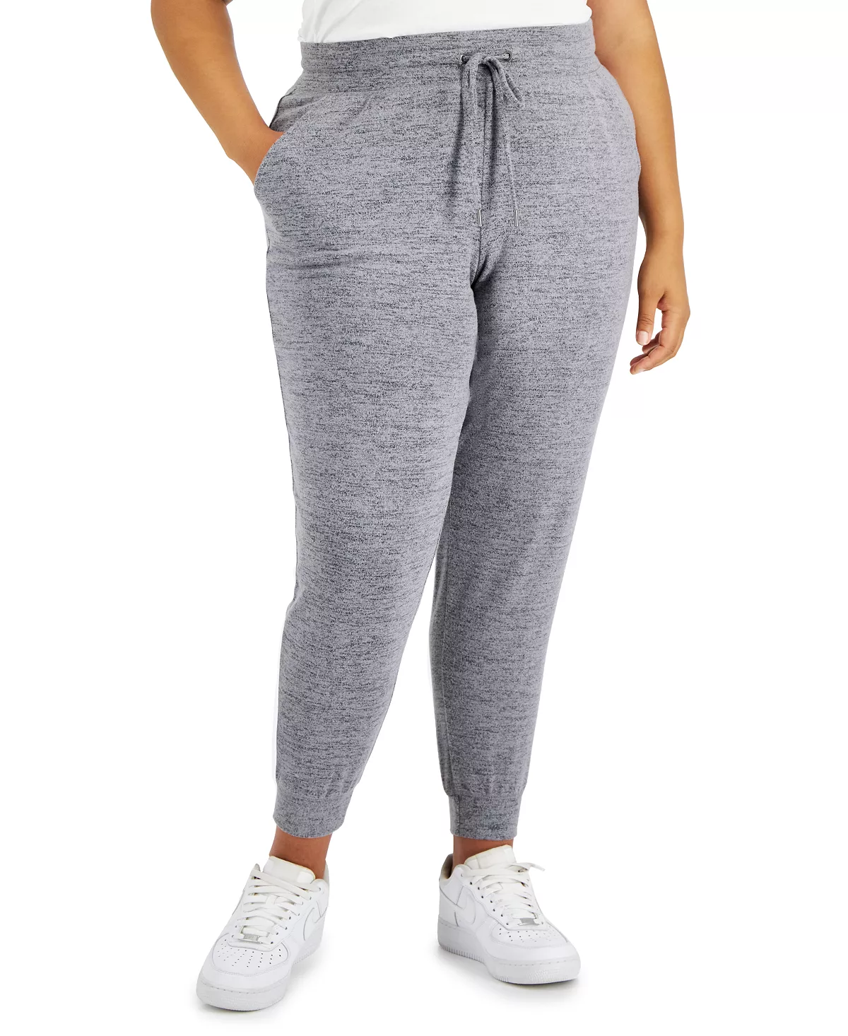 Style up on casual days with Ideology’s plus size pants, cozy knit joggers finished with a flattering high rise and handy pockets at the sides.