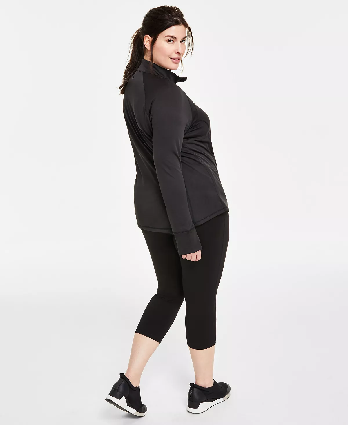Equip your workout wardrobe with this plus size look from ID Ideology featuring a matching performance jacket and capri-length leggings paired with a comfy tee.