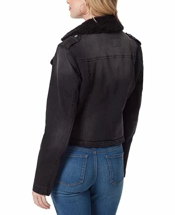 Change up your outerwear routine with Jessica Simpson’s cool moto jacket, a daring denim design trimmed and lined with plush faux fur.