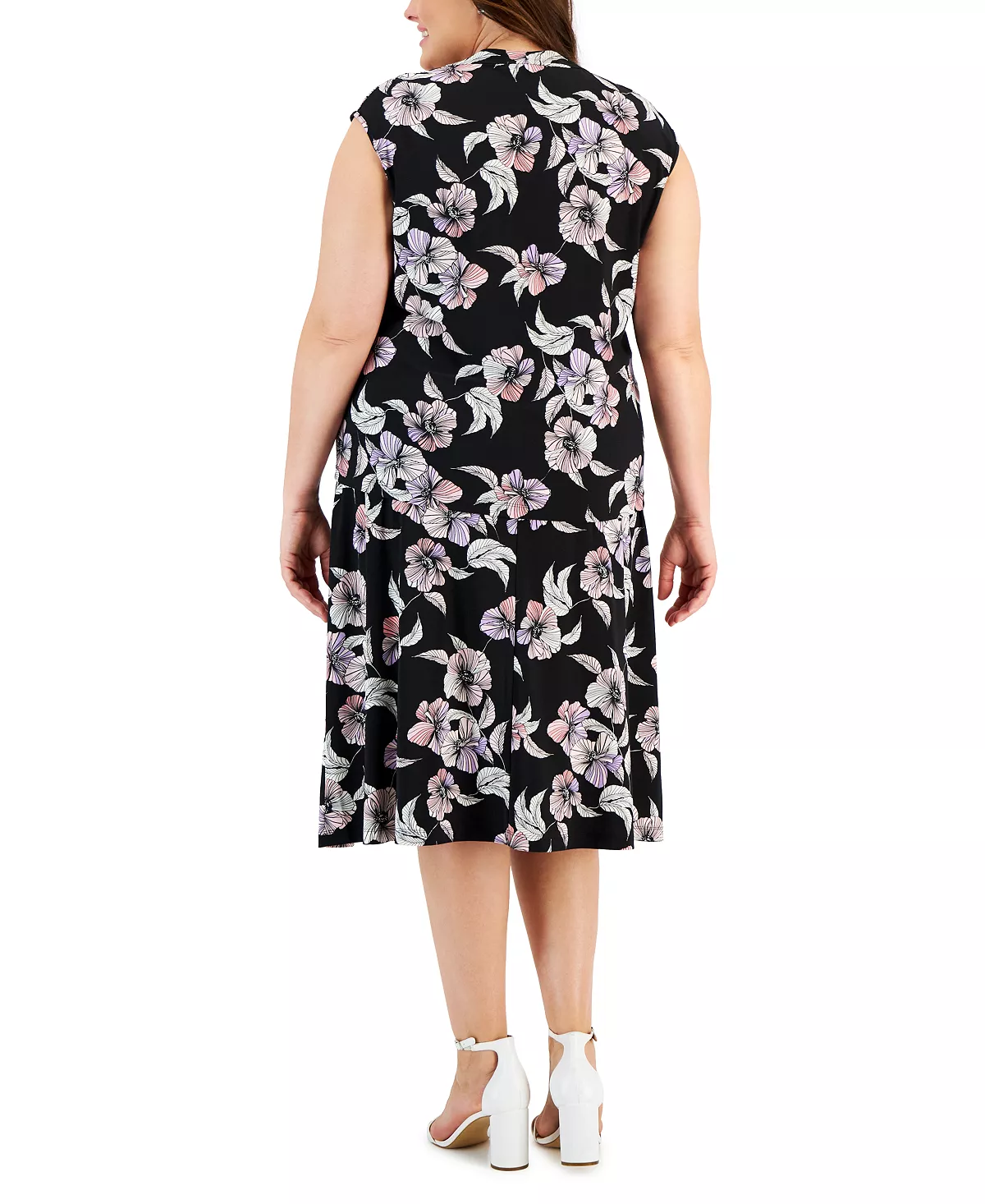 Kasper Plus Size Floral Print Cowl Neck Top & Floral Print Midi Flare Skirt