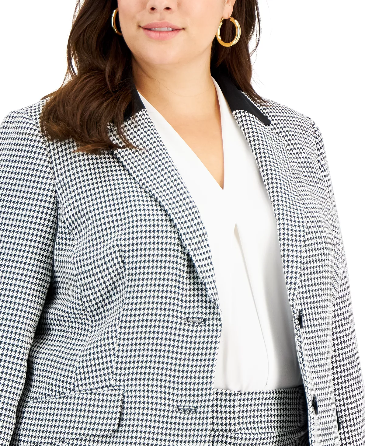 Top off your looks with this houndstooth plus size jacket from Kasper, featured with button closures at the front for endless styling options.