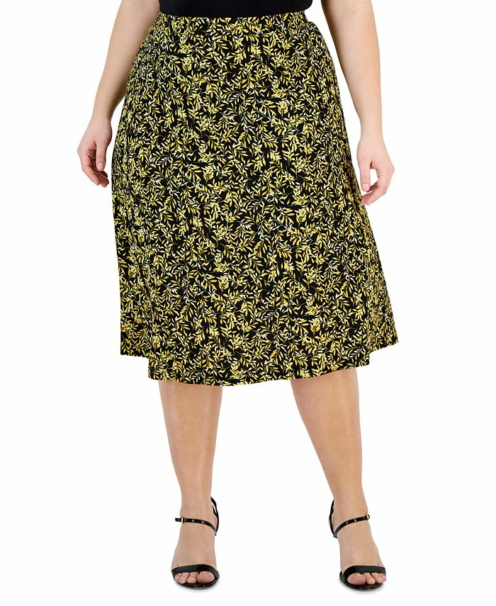 Kasper’s plus size pull-on midi skirt is a fashionable and comfortable choice for a work outfit. Featured with a versatile length that can be paired with a variety of tops and blouses.
