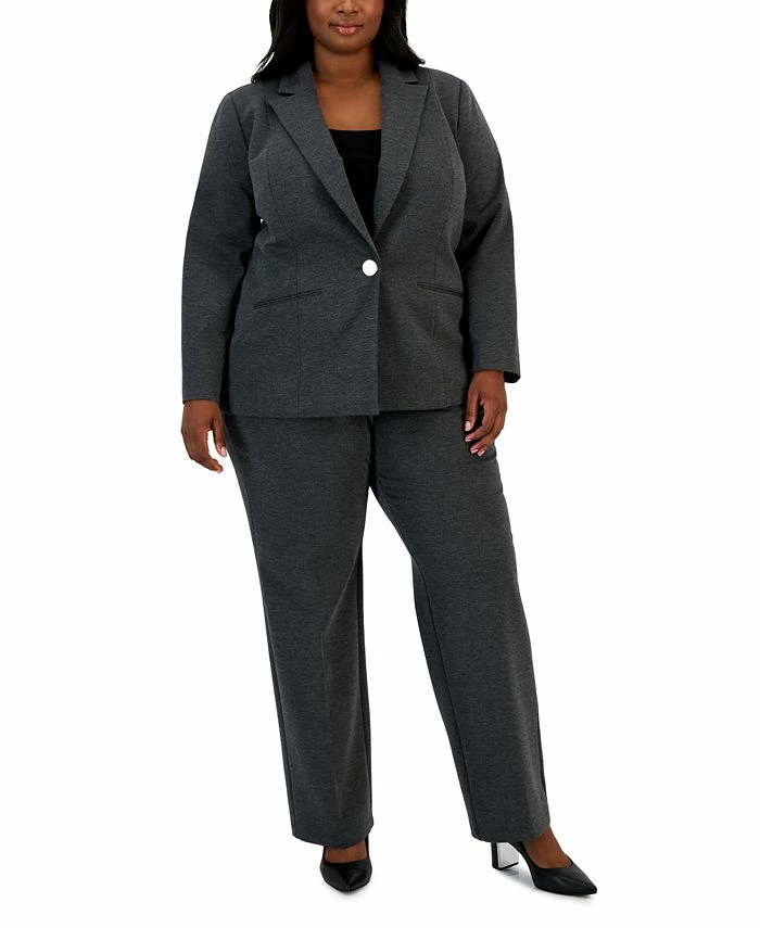 The chic plus size blazer and matching pull-on pants from Kasper makes getting dress for your professional work-day a cinch. Pair with a variety of tops for endless styling options.