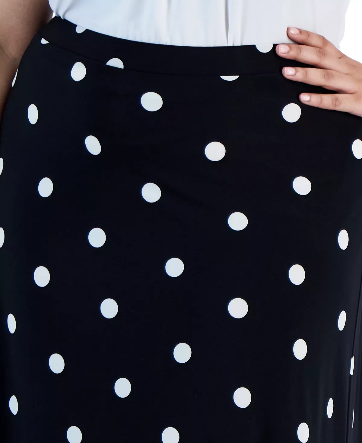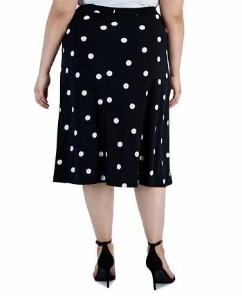 Perfectly chic, this plus size midi skirt from Kasper is covered in a timeless polka dot print.