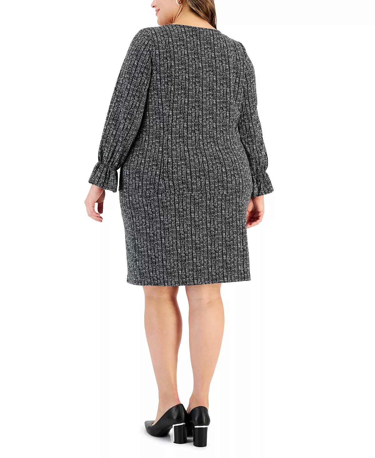 Kasper combines coverage with sleek and sophisticated design; this plus size blouse features a stylish flared-cuff sleeve, whilst the matching skirt showcases the timelessly classic pencil silhouette, both are finished in a perfectly polished print.