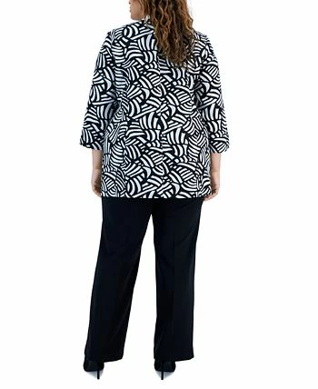 Top off your work look in timeless style with this printed 3/4-sleeve plus size blazer from Kasper.