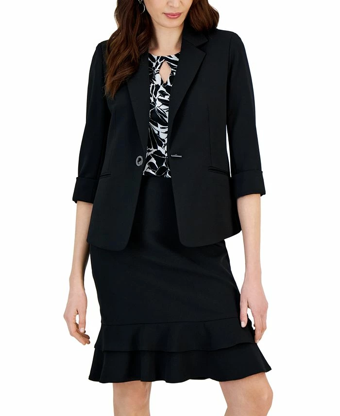 Kasper keeps you professionally polished by upgrading a stylish staple with this single button blazer.