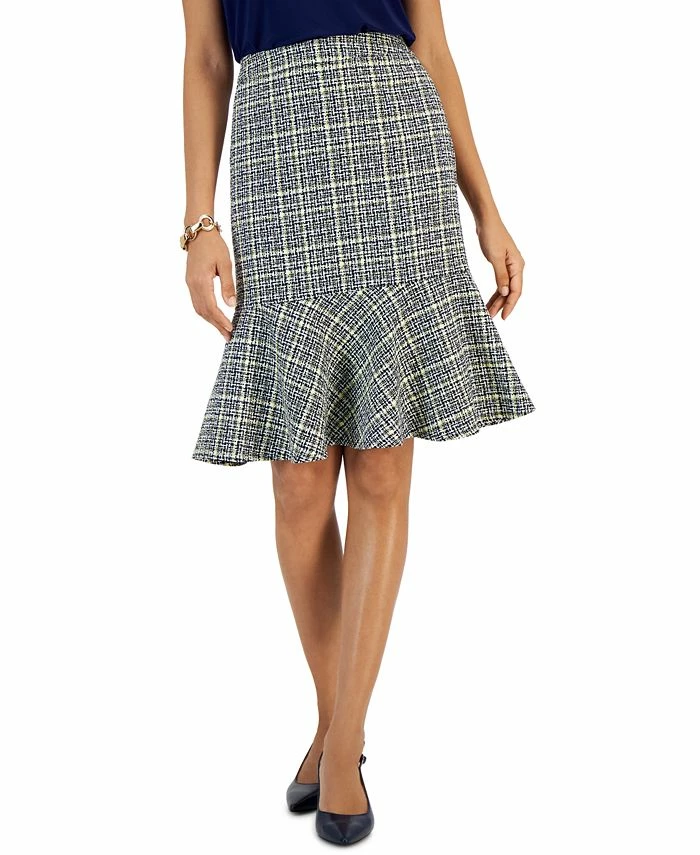Kasper elevates this skirt with a sophisticated flounce detail and allover chic tweed.