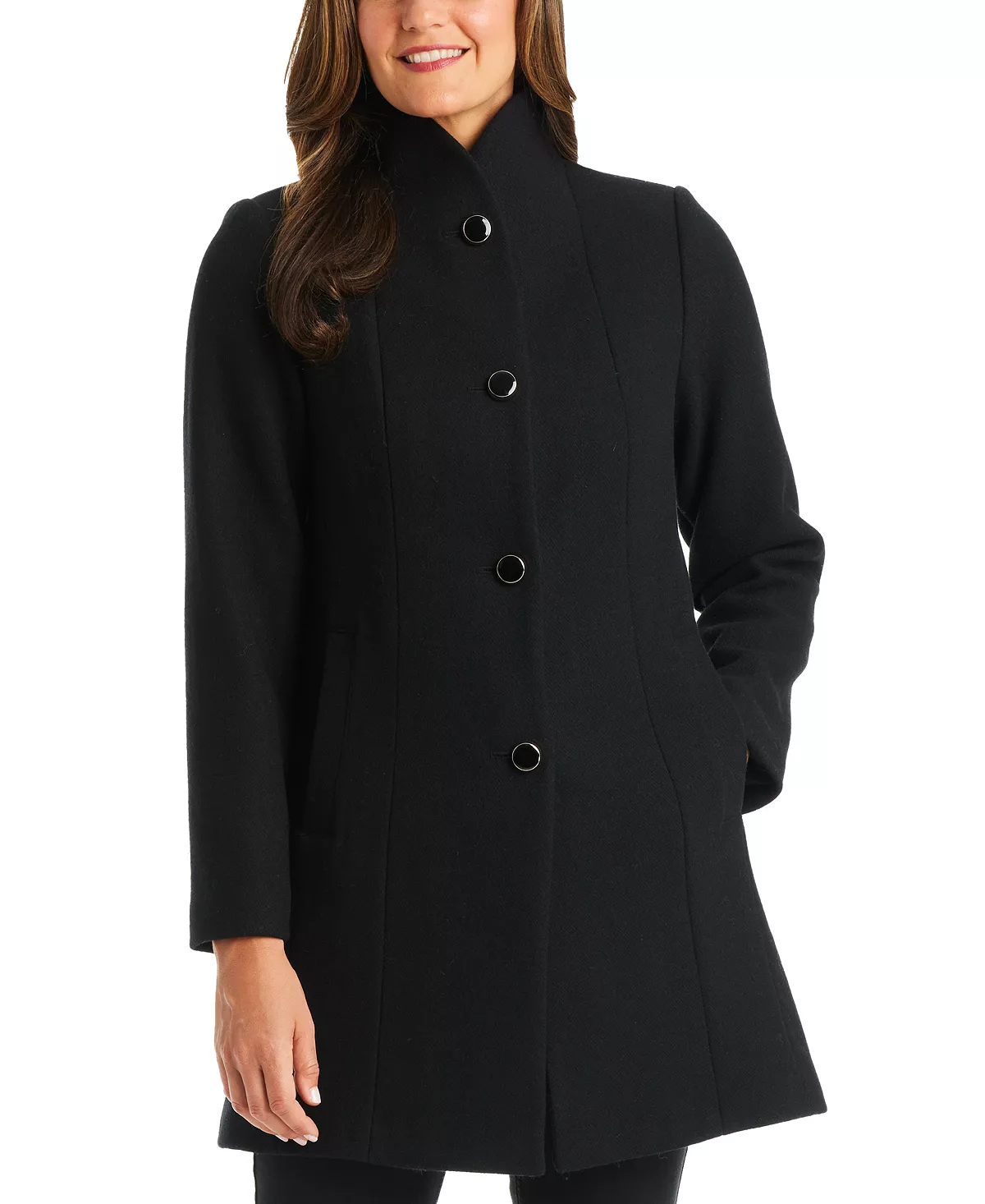 A timeless option from Kate Spade New York, this single-breasted coat features a classic stand collar and two welt pockets.