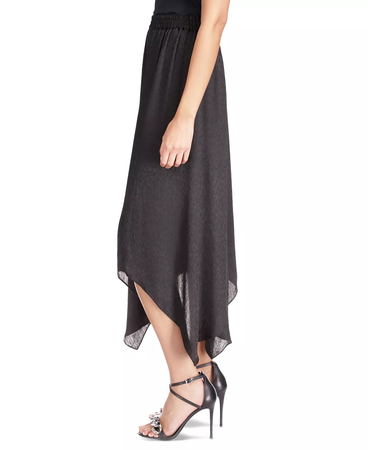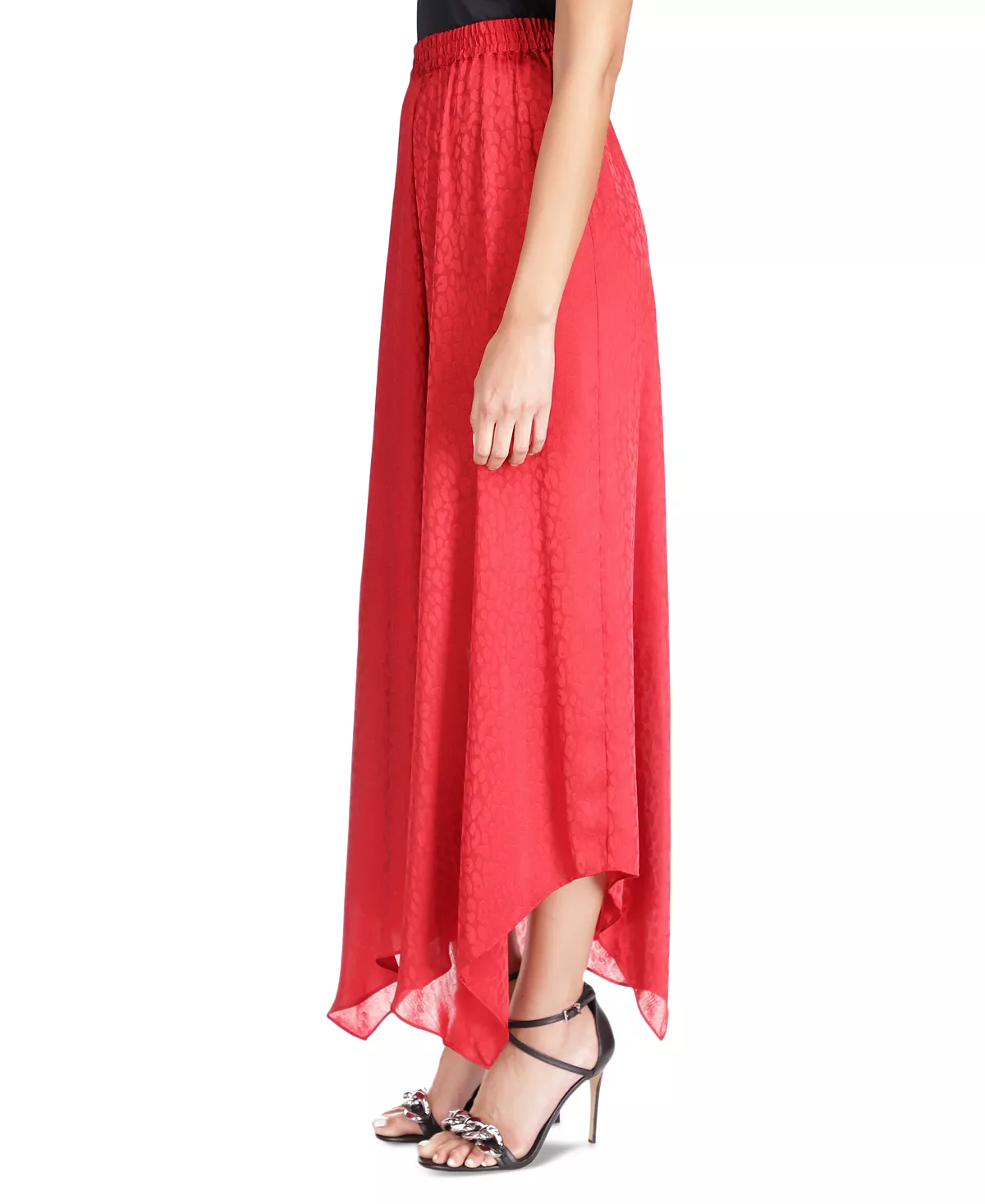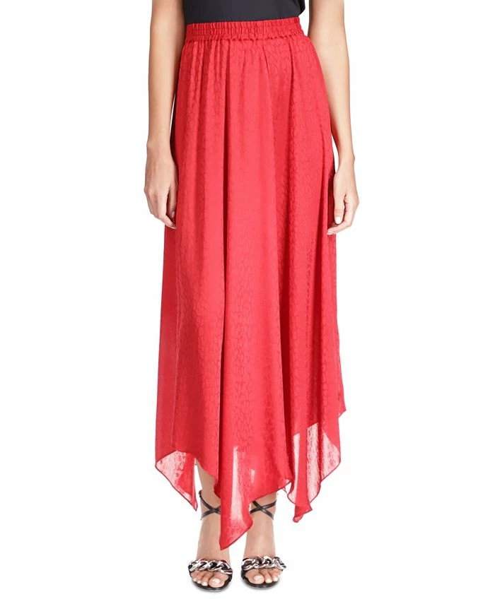 Cheetah chic. This elegant MICHAEL Michael Kors skirt features a tonal cat print and a dramatic handkerchief hem.