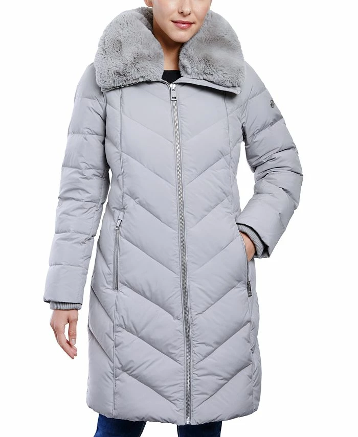 Go for glam in this puffer coat from MICHAEL Michael Kors designed with a luxurious faux-fur collar and cozy knit cuffs.