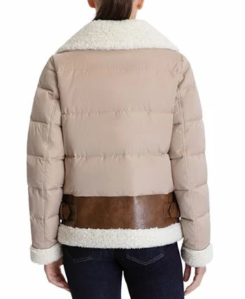 A chic faux-shearling design puts fashion in focus in this down puffer coat from MICHAEL Michael Kors.