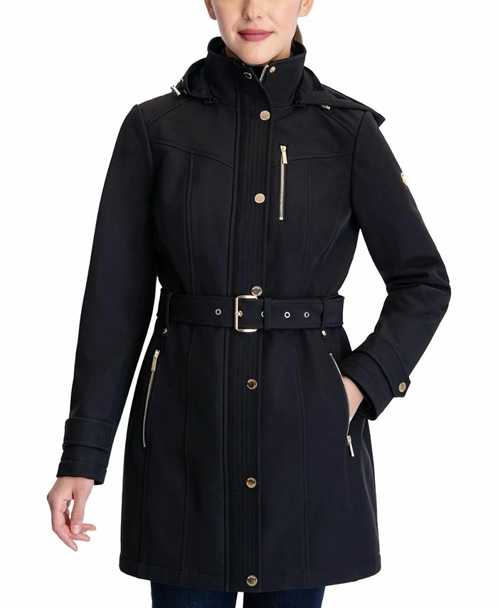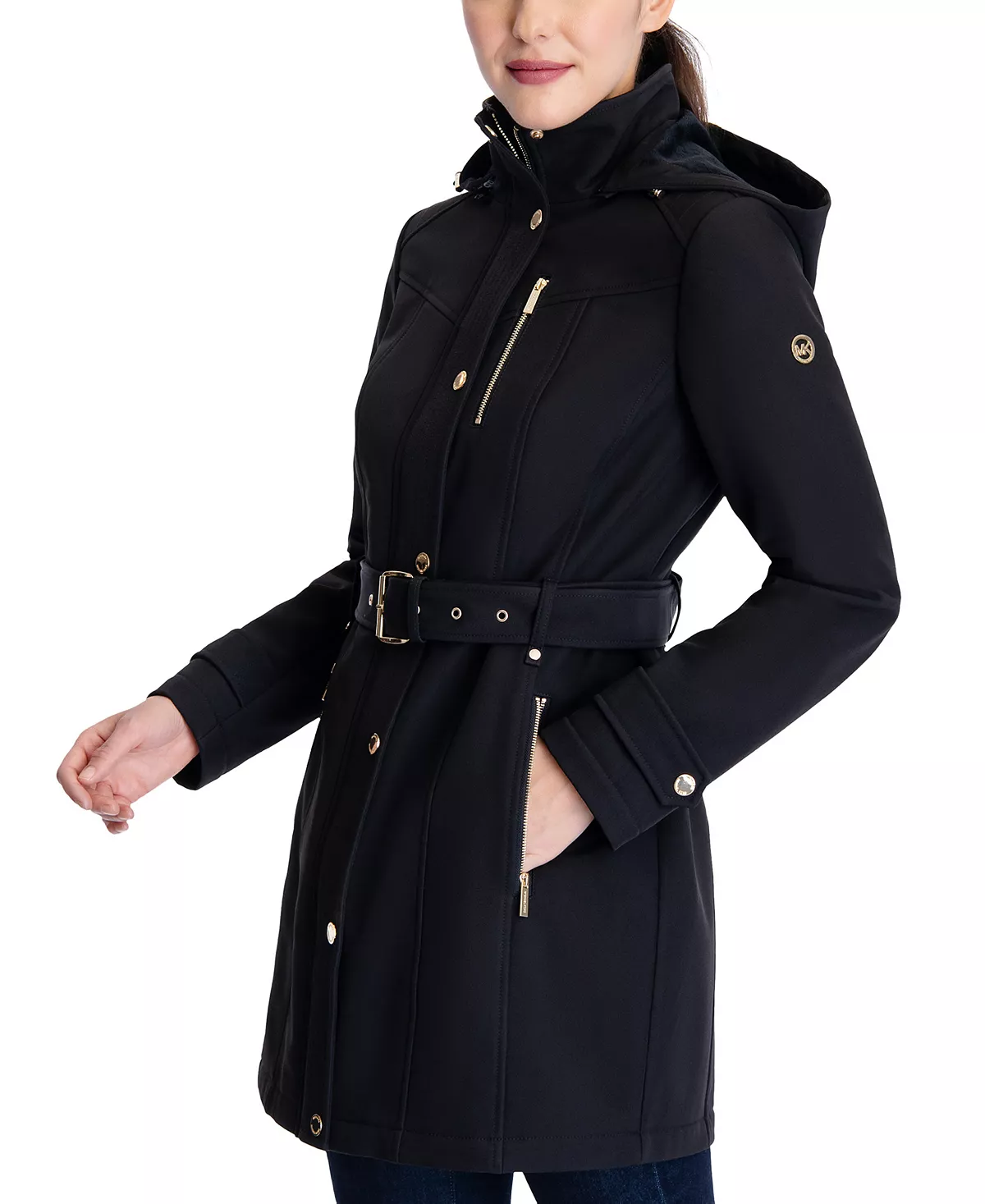 MICHAEL Michael Kors helps make those rainy days a little extra stylish with this hooded raincoat designed with a waist-defining belt.