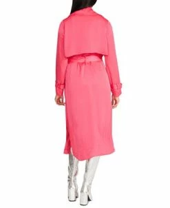 A chic logo belt with D-ring hardware defines the waistline of this hooded plus size trench coat from MICHAEL Michael Kors.