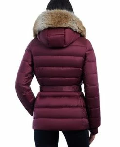 Michael Kors Women’s Belted Faux-Fur-Trim Hooded Puffer Coat
