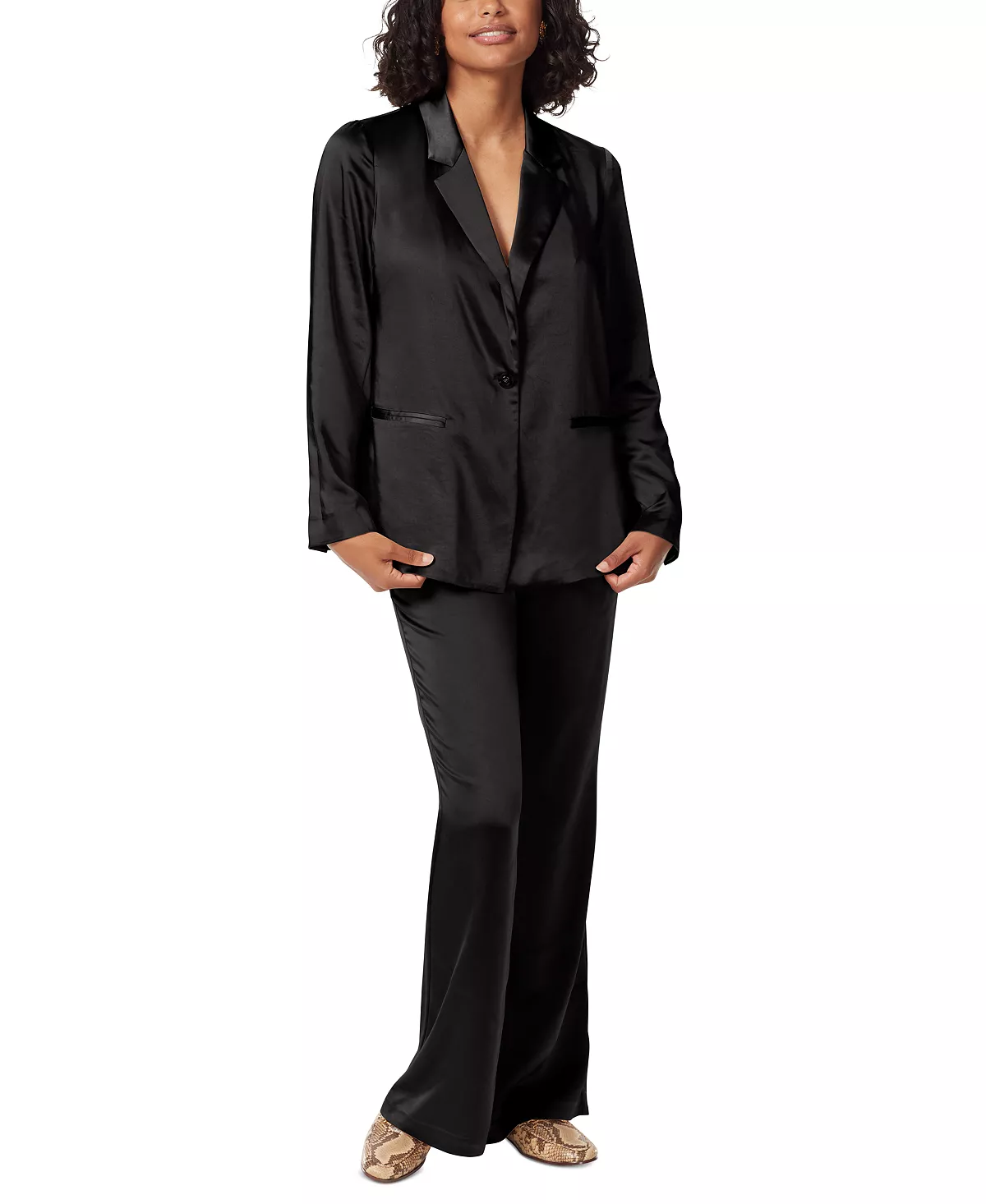 A fashion-forward addition to your closet, Sam Edelman’s notched-collar satin blazer adds polished style to your wardrobe.