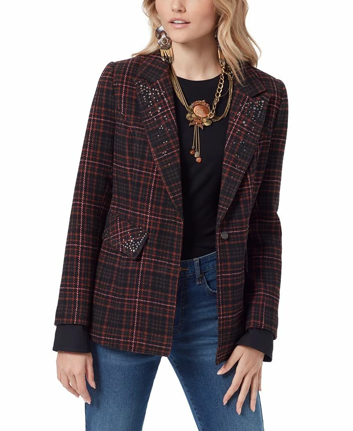 Scattered studs at the lapels and pocket flaps give eclectic edge to the classic plaid of the Margot blazer from Sam Edelman.