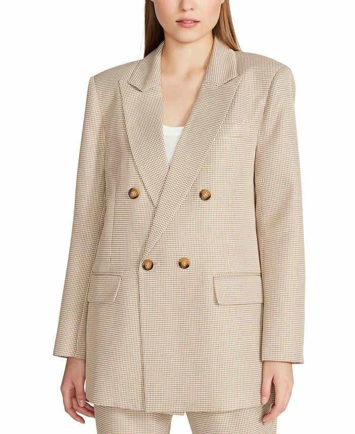 A classic style with a contemporary silhouette, this sleek blazer by Steve Madden combines a double-breasted, peak lapel design with an oversized fit for a look that is as versatile as it is chic.