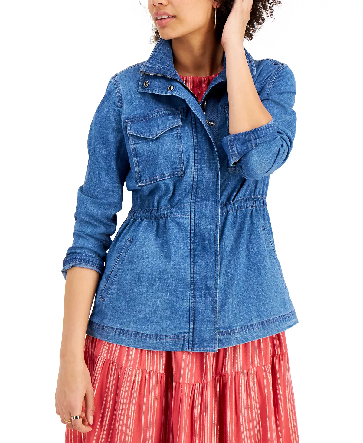 That effortlessly cool and timeless piece you can always depend on, Style & Co’s Chambray Twill jacket features a cinched waist for a shapely fit.
