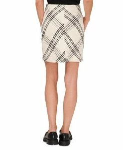Timeless houndstooth gets a fresh edge from Vince Camuto. This mini skirt accents a classic motif with decorative buttons at the front.