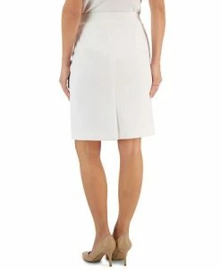 A sleek side front seam is topped with a crest button and finished with a rounded hemline notch in this versatile mini skirt from Vince Camuto.