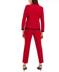 Kasper Women’s Link-Print Jacquard-Waist Seam Topper Coat & Link Print V-Neck Belted Dress