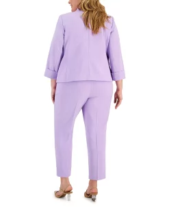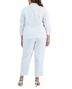 Kasper Plus Size Linen One-Button Jacket, Twist-Neck Top, & Linen Pants With Side Slits